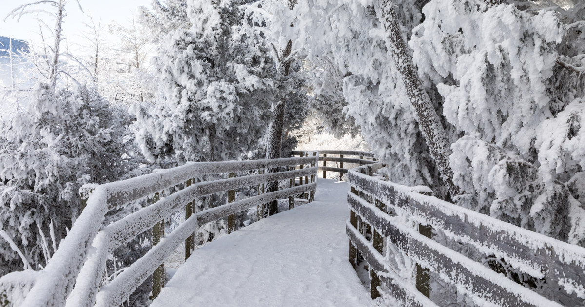 Feature: Rime ice on the boardwalk of Mammoth Hot Springs Upper Terraces, YF / Matt Ludin