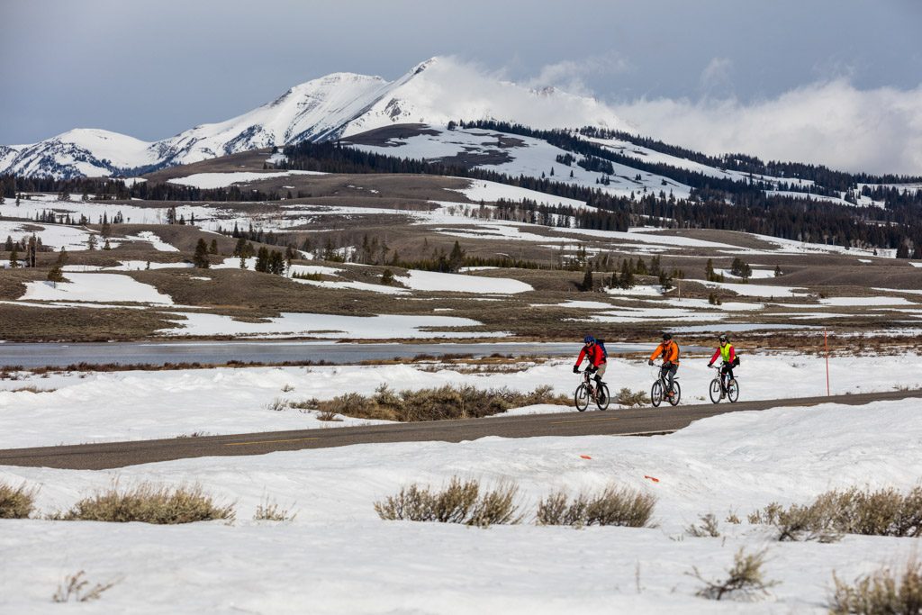 Each year in late March or early April, park roads open up for cycling to destinations like the Norris Geyser Basin, Madison Junction, and West Thumb Geyser Basin. Though there is no public vehicle access during this time, snowplows and park administrative vehicles use the roads frequently. With volatile weather and limited services, those ready for this adventure should be well prepared for all conditions.