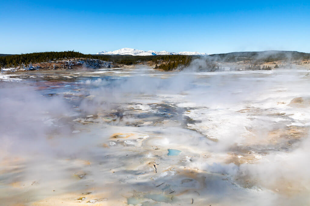 Norris really has it all. It has hot springs, mud pots, fumaroles, and geysers, including the tallest geyser in the world, Steamboat. It has some of the most acidic and highest temperature springs and also has alkaline springs. It has hydrothermal explosion craters, is criss-crossed by faults, experiences extensive seismic activity, and has been active for nearly a quarter of a million years. Some spring communities are supported by light energy (photosynthesis) while others are supported by chemical (mineral) energy and these together drive the gamut of spectacular colors of each spring. Plus, the sulfidic smell (rotten eggs) of Norris is nothing one will ever forget, and it will stick to your clothes ensuring that you canât forget until you hit the laundry.