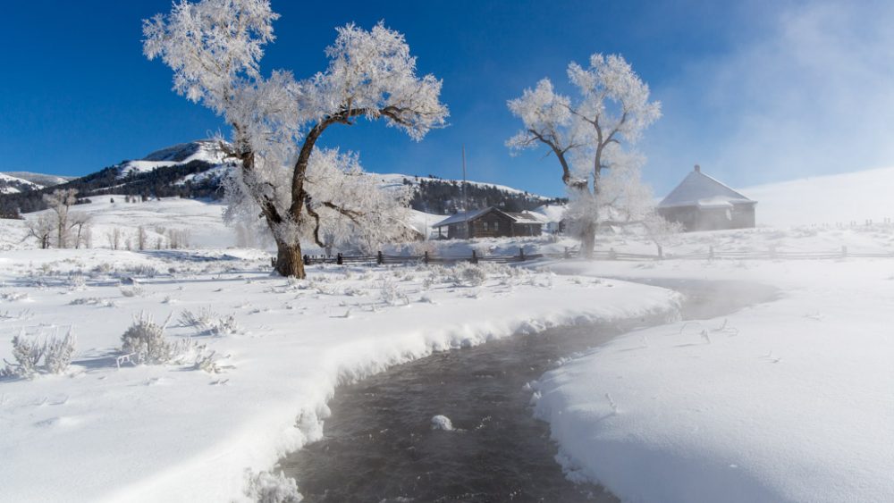 Assuming your car has heat, you’ll have a warm front-row seat to see wildlife and some of Yellowstone’s most open and scenic vistas. This route from Mammoth to Cooke City is the only road open to wheeled vehicles year-round.