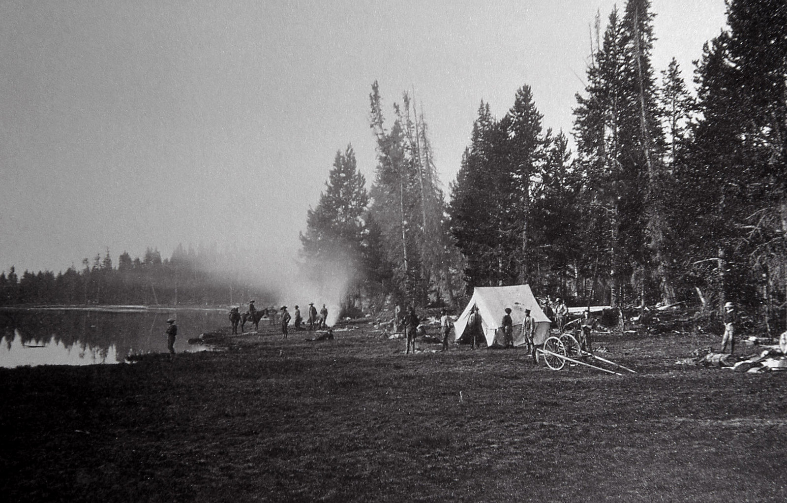 Hayden Expedition camp by a small lake near Yellowstone Lake, 1871. NPS Archives/William Henry Jackson
