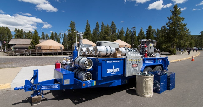 While an older fuel-cylinder recycling machine existed in Yellowstone, Bernzomatic invested significant resources to create a first-of-its-kind design with enhanced safety features. The new vehicle now removes residual propane from the fuel cylinders to power its own operation, and if there is enough left, will store fuel for use in park equipment, before crushing the steel for safe recycling. And since it works over 20 times faster than its predecessor, it will be better able to keep up with the large number of cylinders being used and collected from Yellowstone and Grand Teton national parks and the surrounding area.
